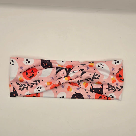 🎃 Halloween Ghost, Pumpkin, & Hat Twist Knot Headband – Fall Hair Accessory