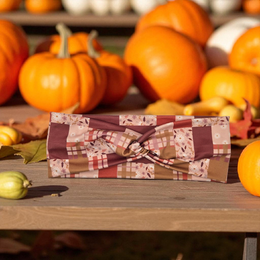 Handmade Fall Patchwork Knotted Headband | Autumn Boho Hair Accessory