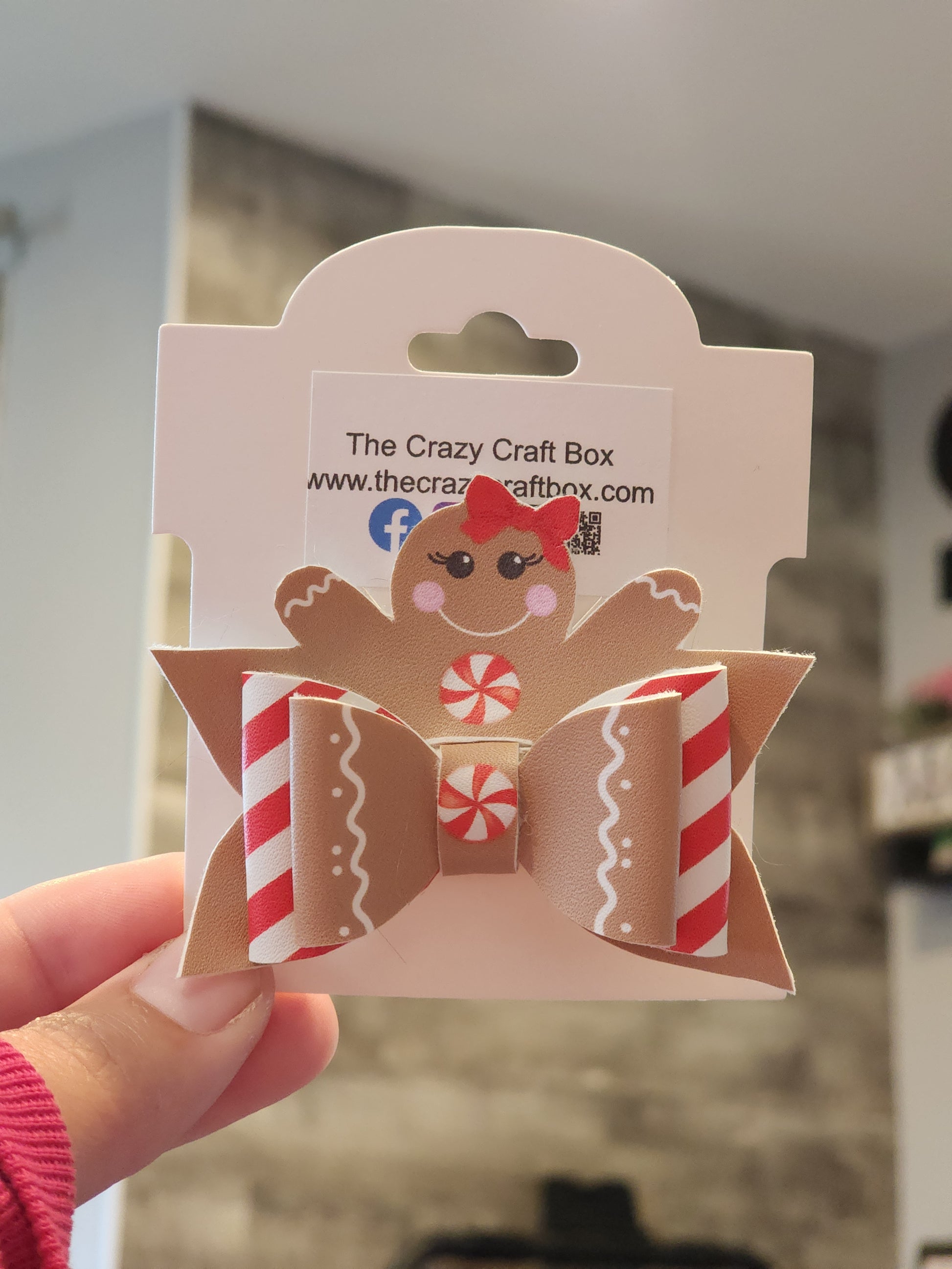 Bring holiday cheer to your look with this adorable gingerbread, Santa, or reindeer hair bow! Perfect for kids and adults alike, this hair bow is a delightful way to add a festive touch to any holiday outfit!