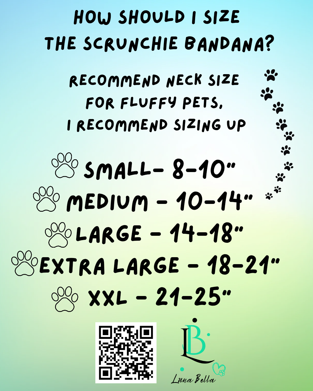 Designed with a scrunchie back for easy slip-on wear, this bandana stays secure without the need for tying, making it comfortable and safe for everyday wear. Whether you’re planning a Halloween party, fall photoshoot, or just want your furry friend to look extra adorable this season, this pet bandana is a must-have.